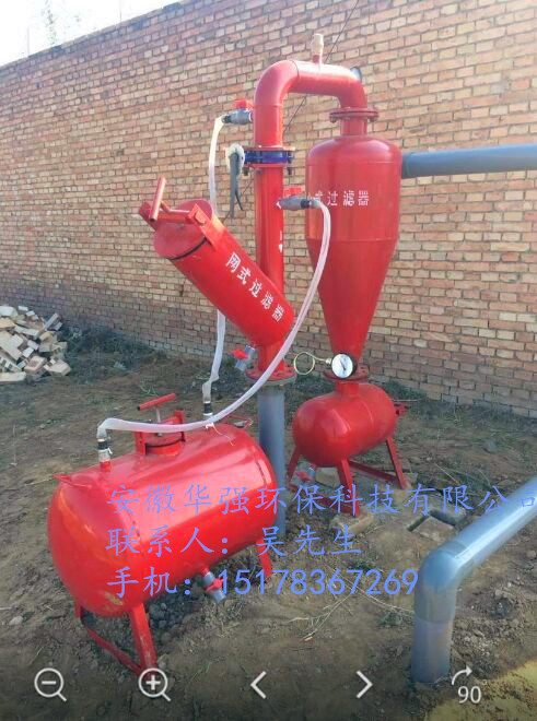 安徽華強環保生產的離心過濾器主要用于含沙水流的初級過濾,可分離水中的沙子和石塊。這種過濾器安裝在井及泵站旁,最適應于分離水中含有的大量沙子及石塊,在滿足過濾條件的要求下,分沙效果:60-150目沙石98-92℅。它一般不單獨使用,而只是作為過濾系統的前段過濾。